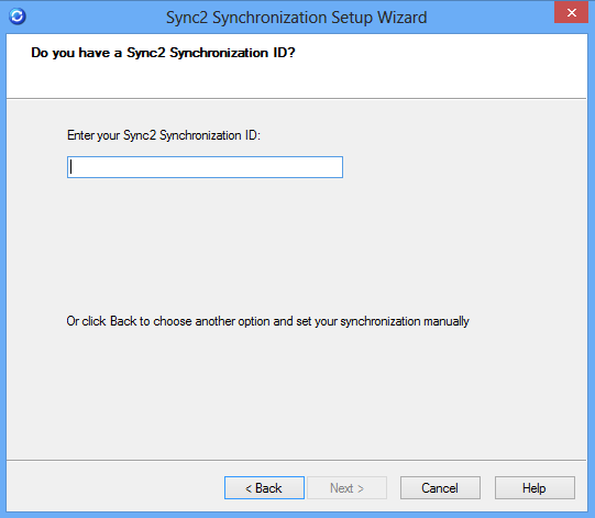 Note: Make sure you have active Internet connection, so that Sync2 could verify the entered Synchronization ID and retrieve the required settings.