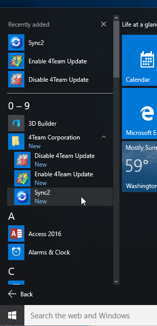 By going to Windows Start menu All Programs, selecting 4Team Corporation -> Sync2;*