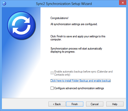 If you need to configure more advanced settings before you begin synchronization, check the "Configure advanced synchronization settings" box and click "Next >".