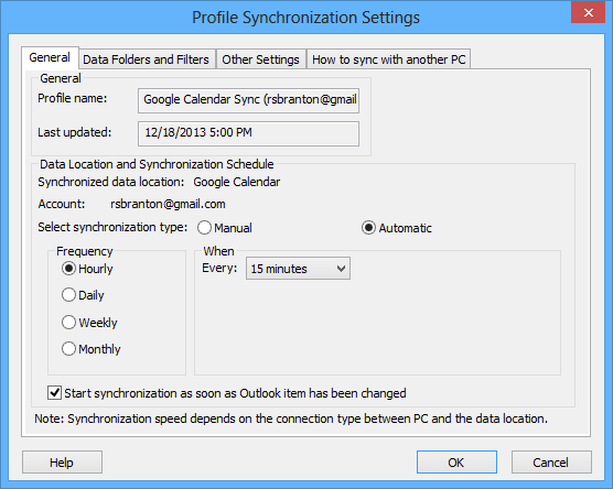 To enable instant synchronization, leave the box “Start synchronization as soon as Outlook item has been changed” checked.