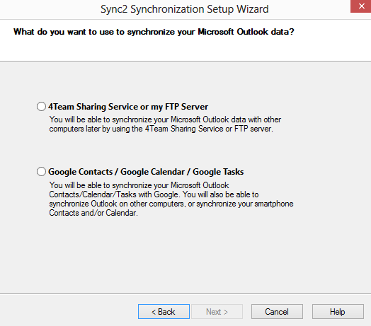 synchronize your Contacts, Calendar or Task folders with Google, or