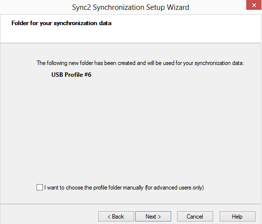 In case no synchronization data is found at the selected location, a new folder will be suggested. If you want to edit its name, check the "I want to choose the profile folder manually" box, and click "Next".