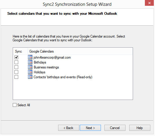 Check "Select All" box if you want to select all the listed Calendars.